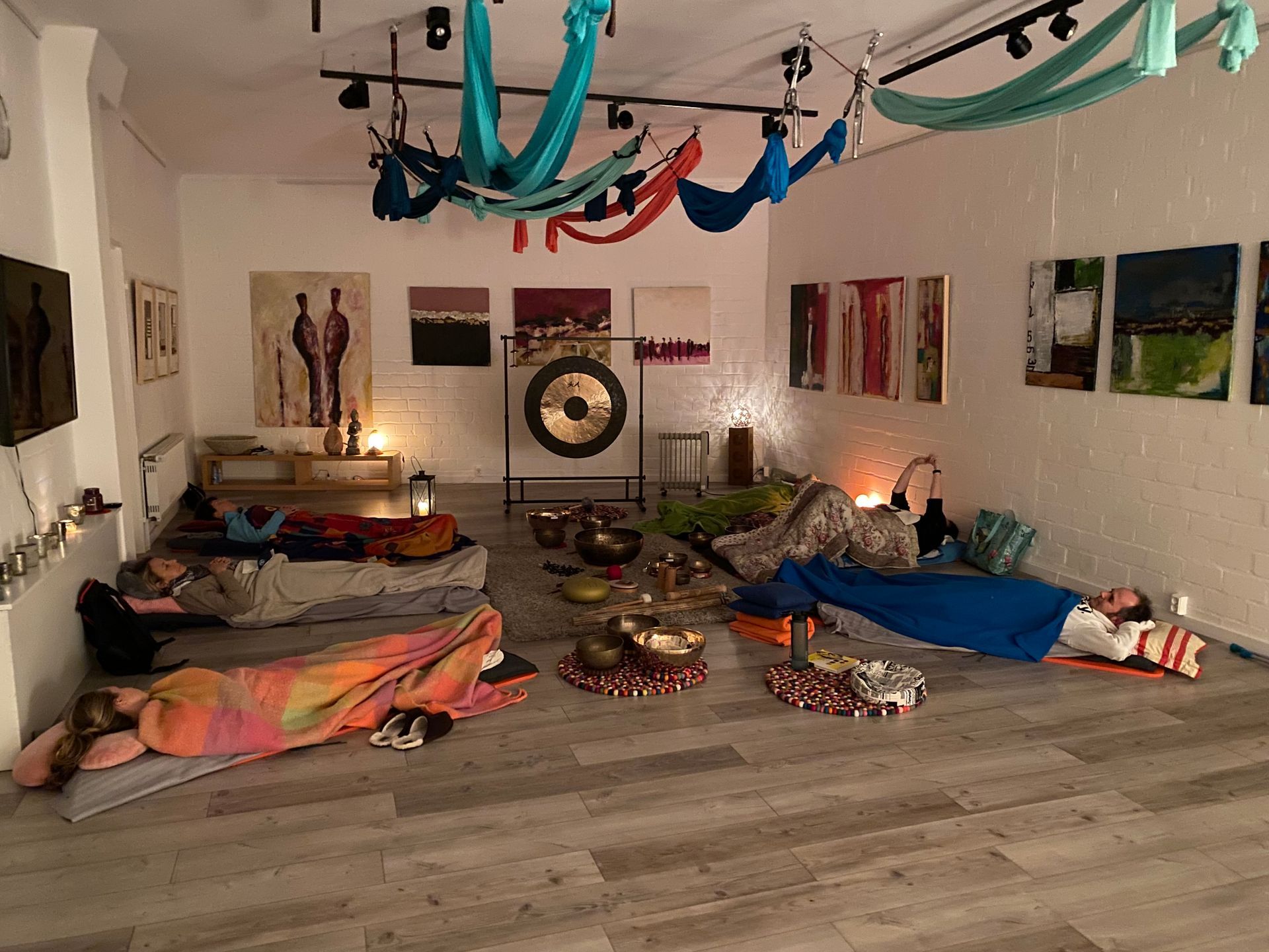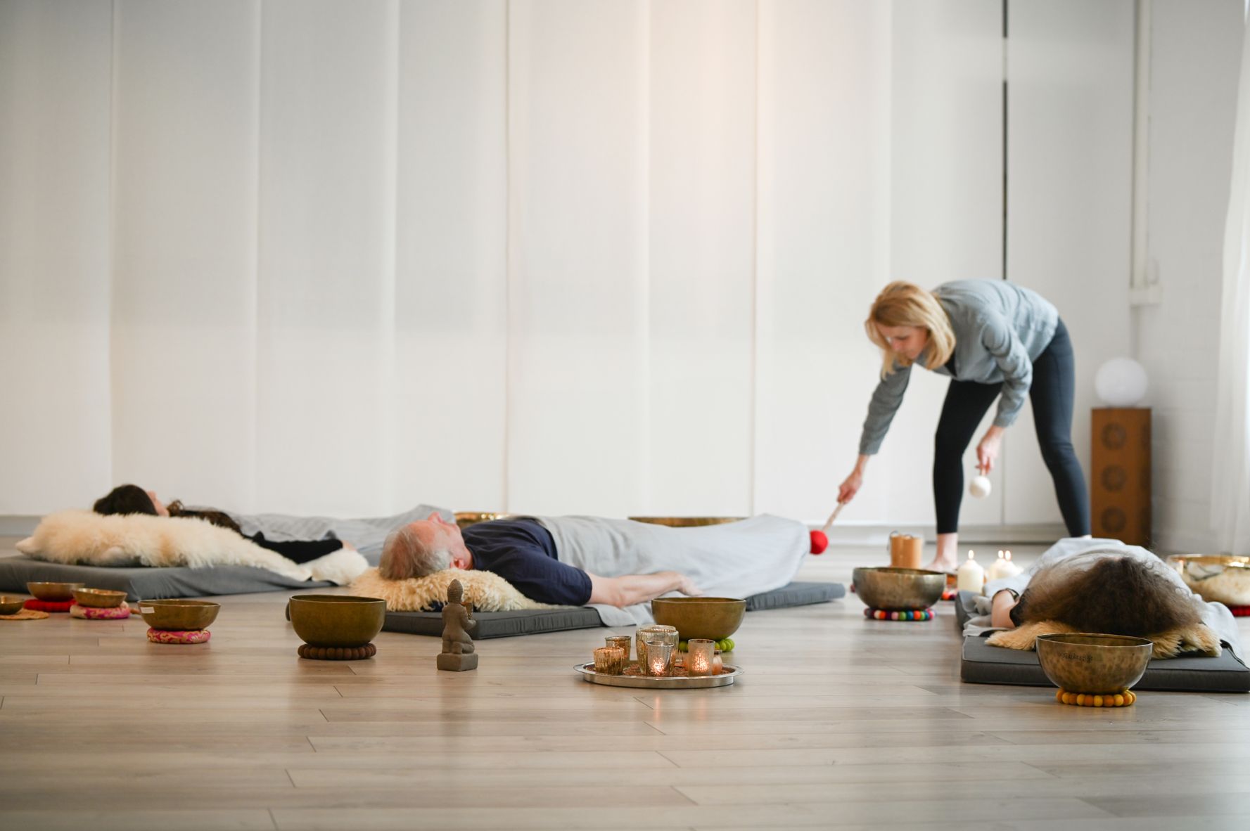 Du wirst nicht aktiv – du empfängst. Die Vibrationen von Klangschalen, Gongs und anderen Instrumenten bringen Körper und Geist in einen Zustand tiefer Entspannung.